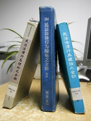 本书属稿,远在抗战以前。乃因参考书遗留家乡,焚毁无余,待欲尽力搜求,设法将资料弥补,奈抗战频年,播迁各地,此点竟无从办到。——芮沐:《民法法律行为理论之全部》“自序”