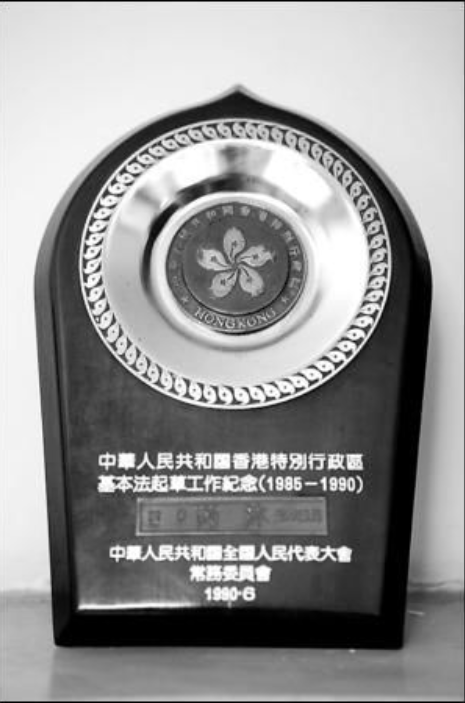 全国人大常委会为香港基本法起草委员会颁发的工作纪念章