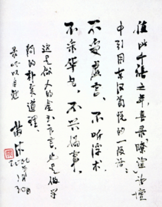 “法学是实践科学、行动科学,作为上层建筑的法律,必须为经济基础服务,这是没有疑问的。法学者的使命是协助我国立法者、司法者在中国建立起具有中国特色的法律体系,我的点滴成就,在于适应改革开放的需要,在实践中创立了两门新学科——经济法和国际经济法,并为这些学科的发展竭尽微薄。”